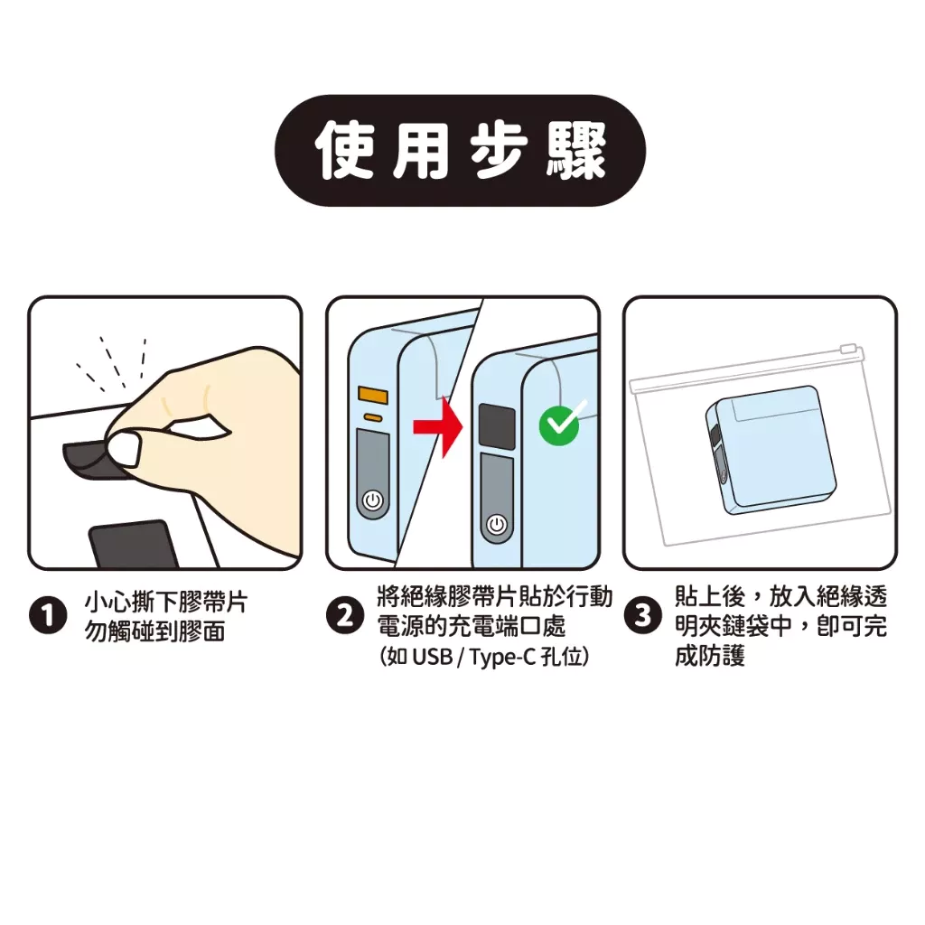 配合國際航空規定,行動電源登機需貼上絕緣膠帶片、並放入透明夾鏈袋中,才能安心過關!本組合商品內含絕緣膠帶 + 夾鏈袋加厚款,一次滿足航空安檢需求。