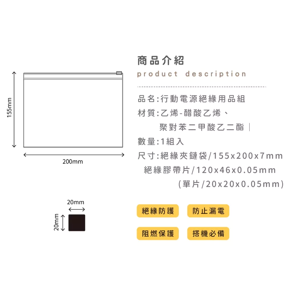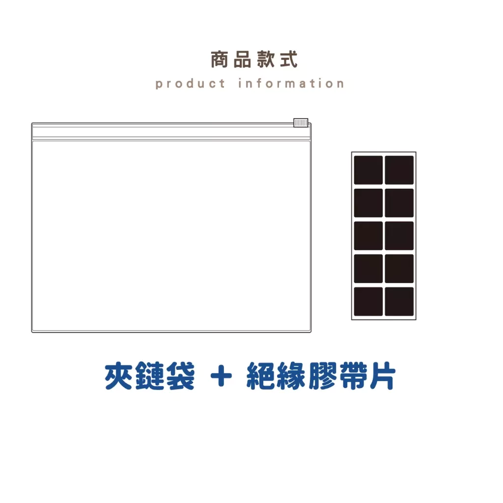 名稱:絕緣套組(夾鏈袋+絕緣膠帶片)